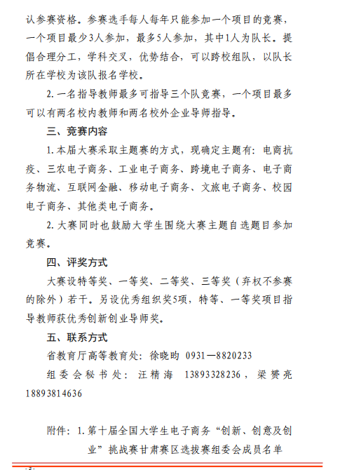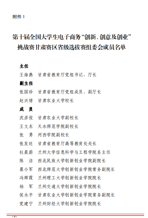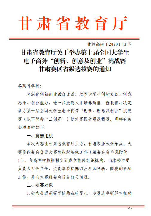 甘肃省教育厅关于举办第十届全国老员工 电子商务“创新、创意及创业”挑战赛 甘肃赛区省级选拔赛的通知