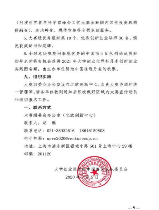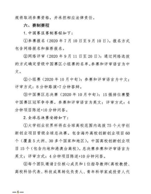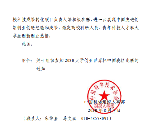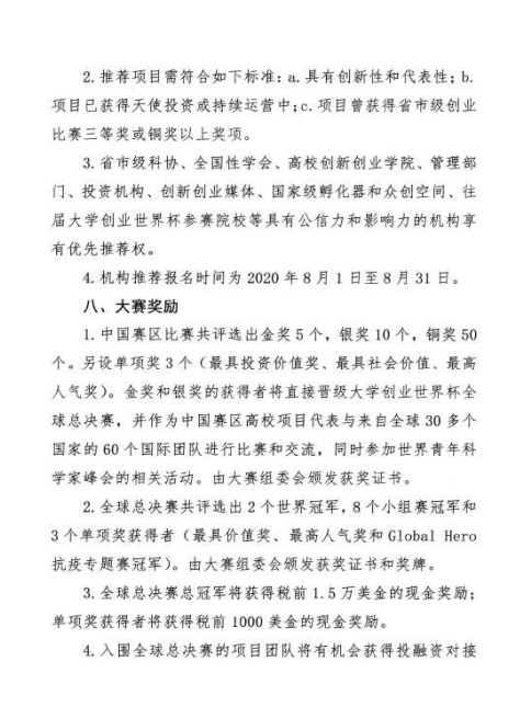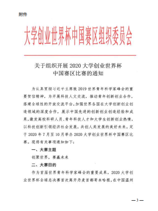 关于转发《关于组织参加 2020 大学创业世界杯 中国赛区比赛通知》的函