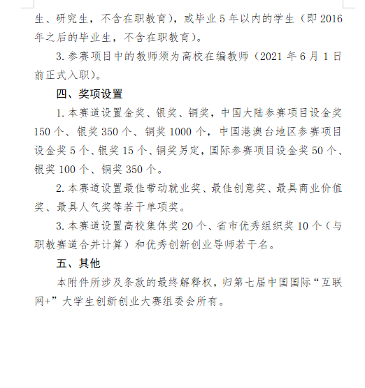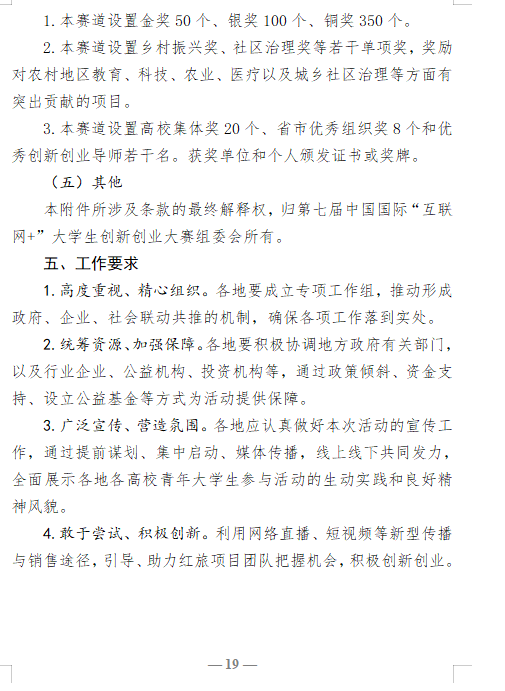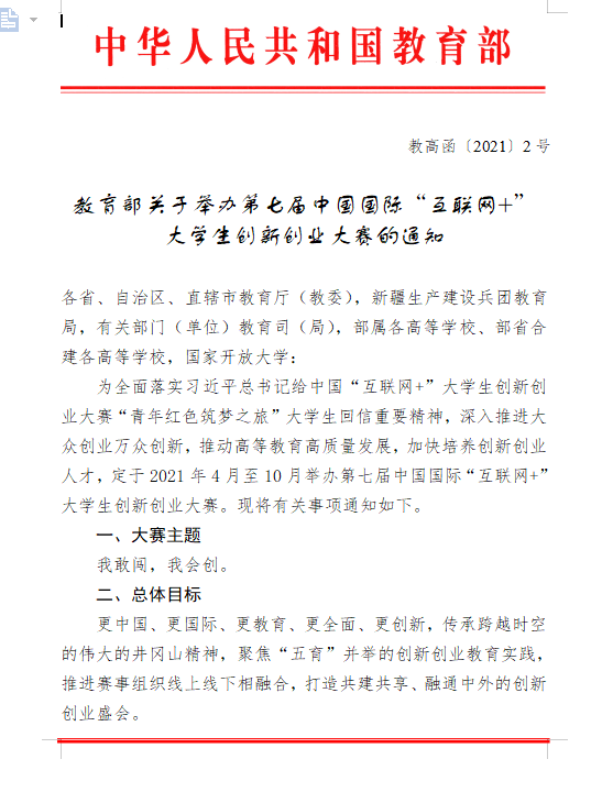 教育部关于举办第七届中国国际“互联网+” 老员工创新创业大赛的通知