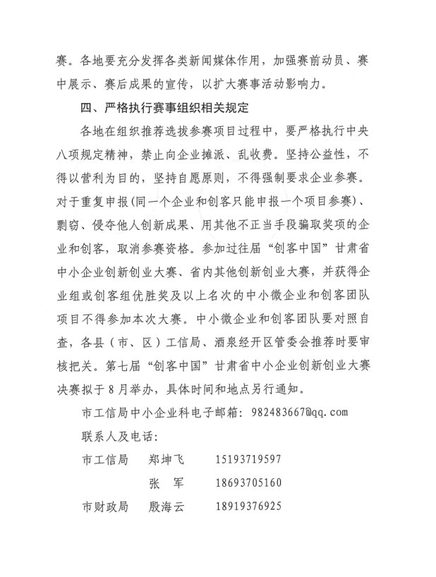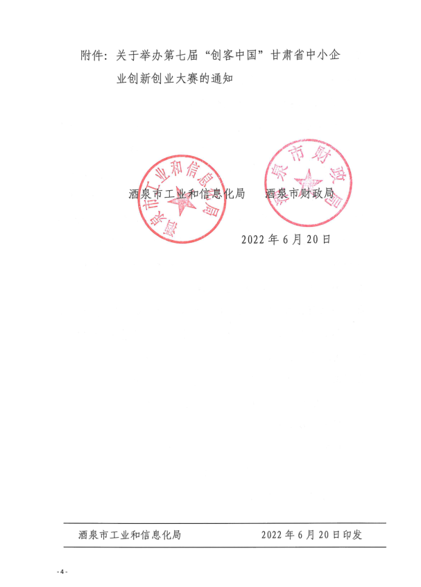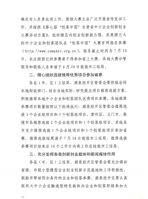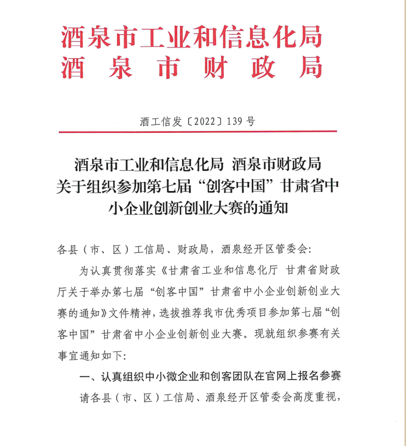 酒泉市工业和信息化局 酒泉市财政局关于组织参加第七届“创客中国”甘肃省中小企业创新创业大赛的通知
