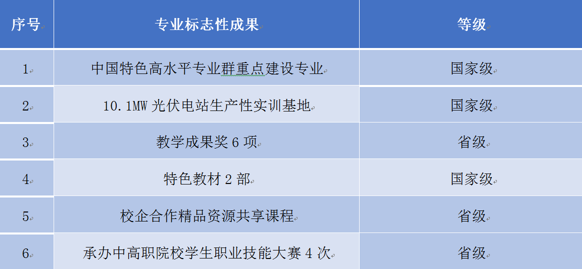 校外与涵盖太阳能应用行业全产业链的浙江晶科、银川隆基、东方电气等7家优质企业签订校企合作协议,建成企业实践教学基地,为打造“双师型”团队队伍和培养本专业复合型人才提供了有力保障。