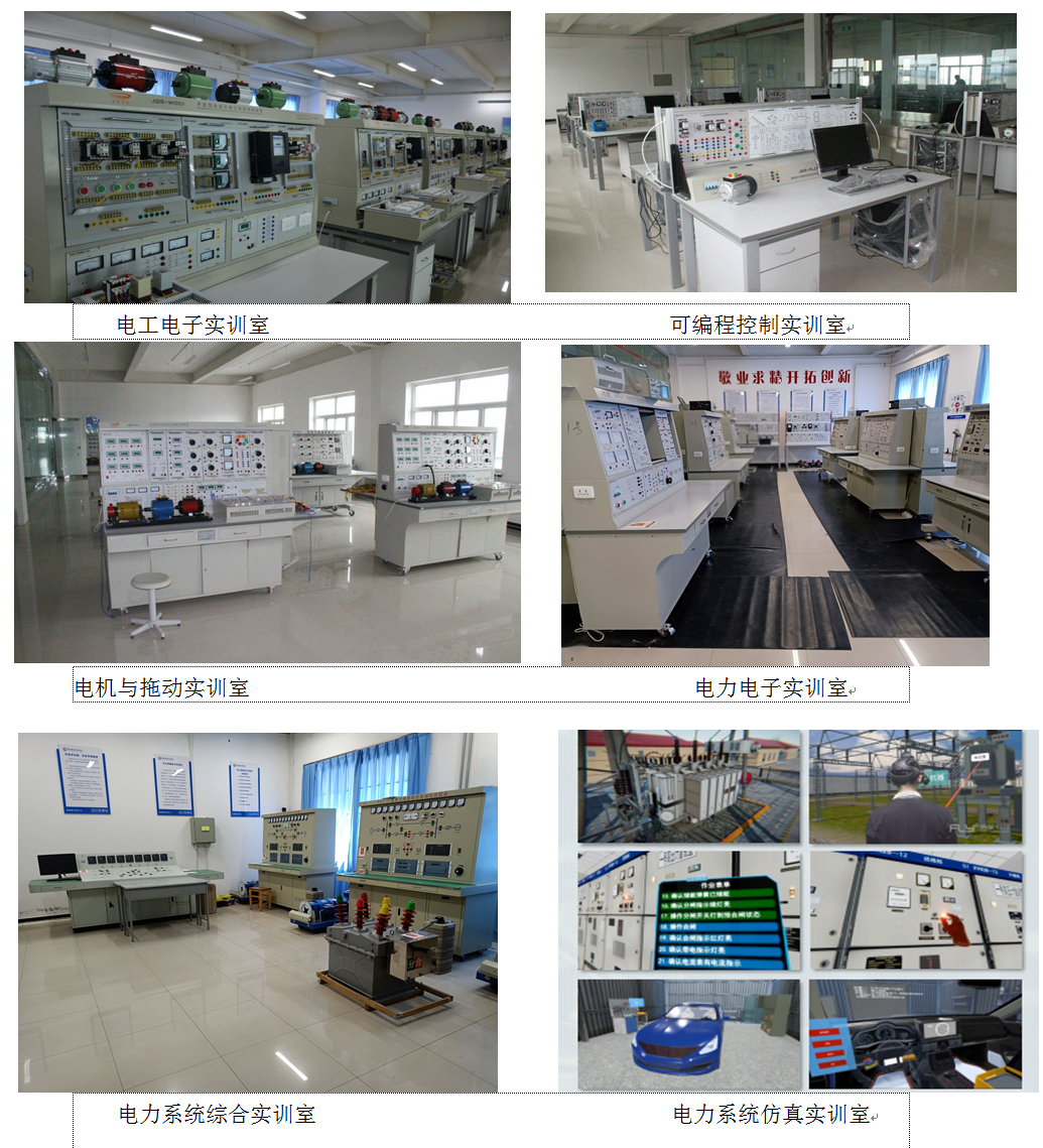 在原有校内实训条件基础上,新建了电力系统综合实训室、电力系统仿真实训室,扩建现代电气控制、智能控制、新能源发电技术应用与创新、供配电技术等实训室;升级改造电工技术、电子技术、电力电子技术等实训室。这些为教师教学、科研,员工实训提供了极佳的场所。