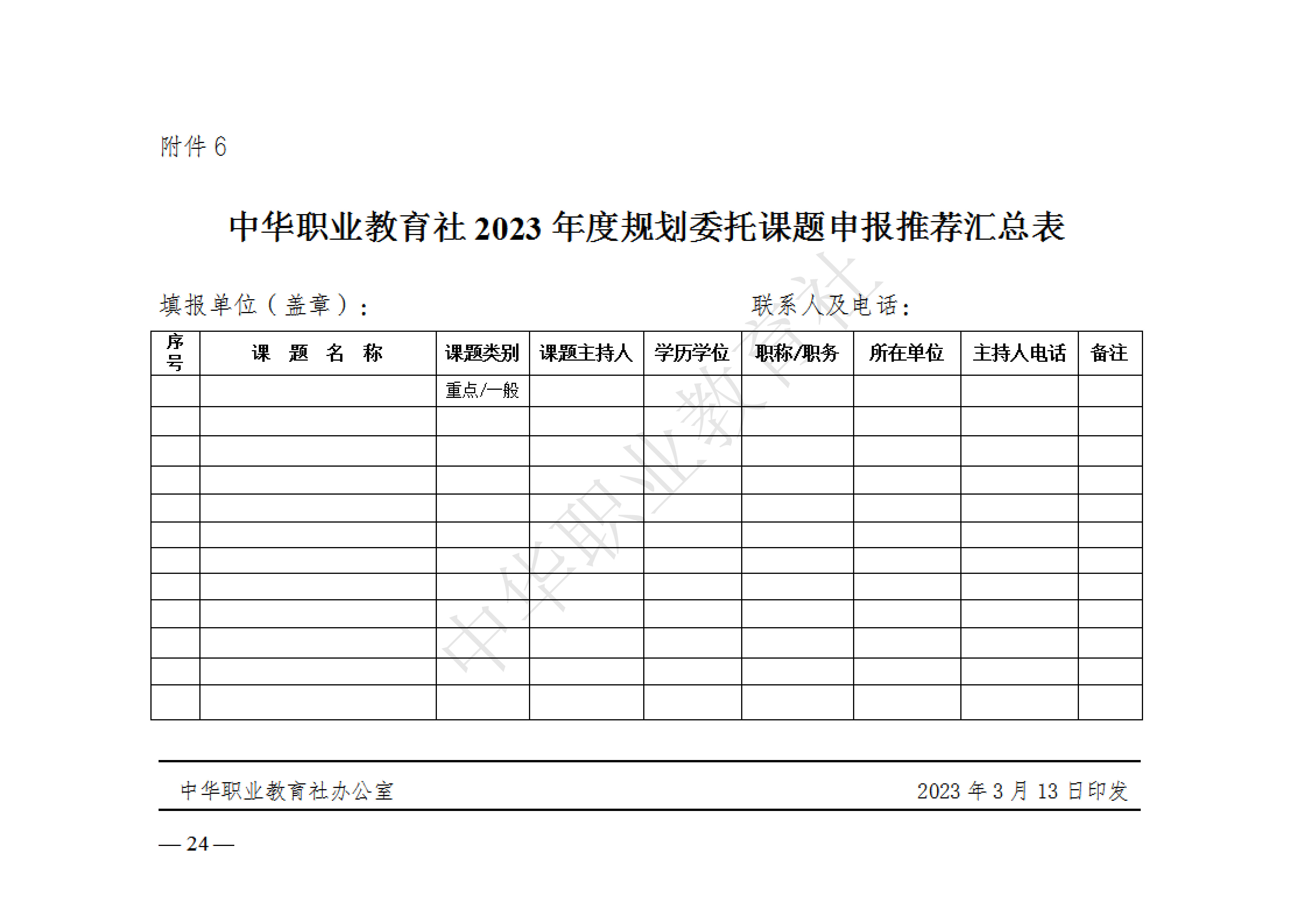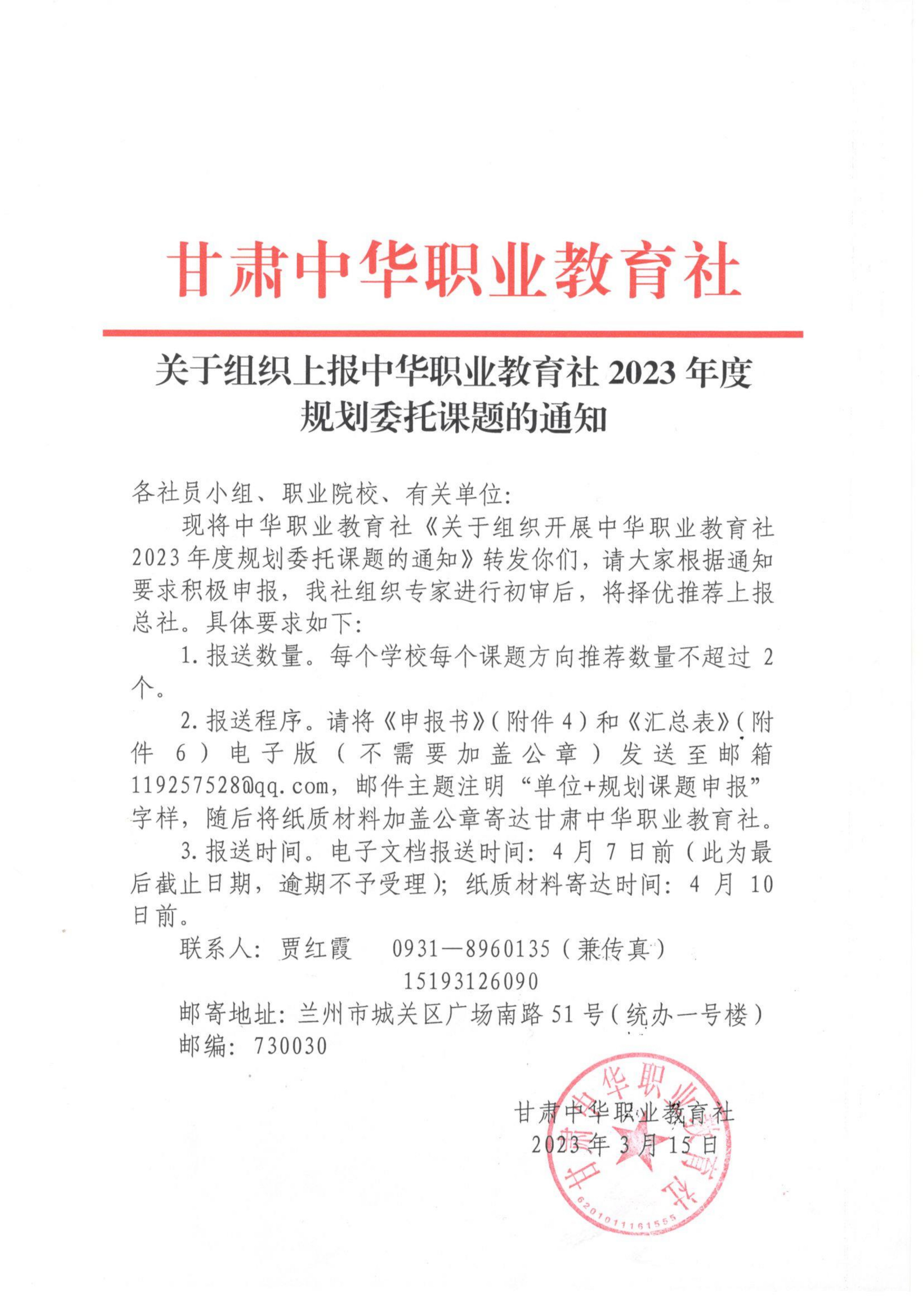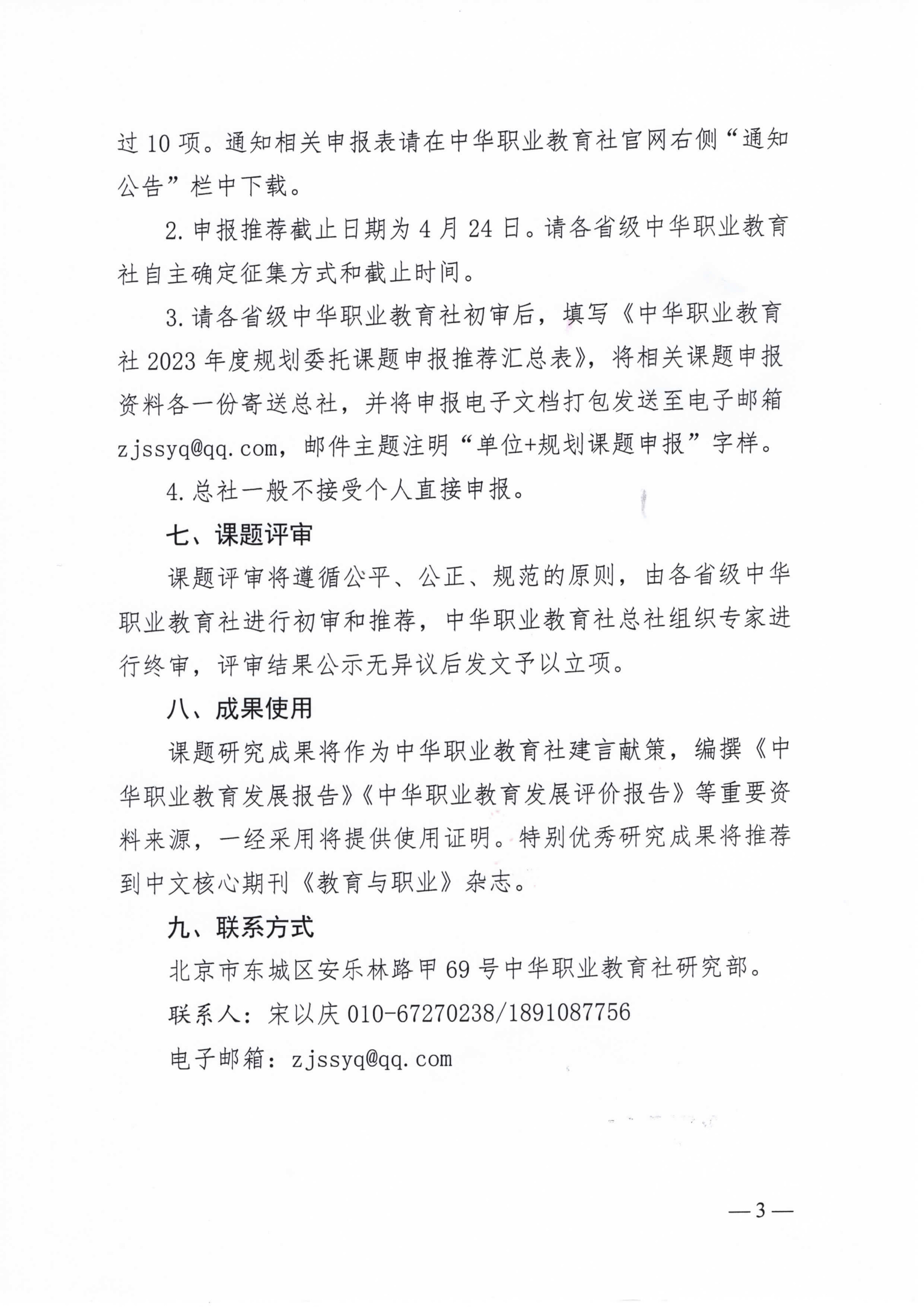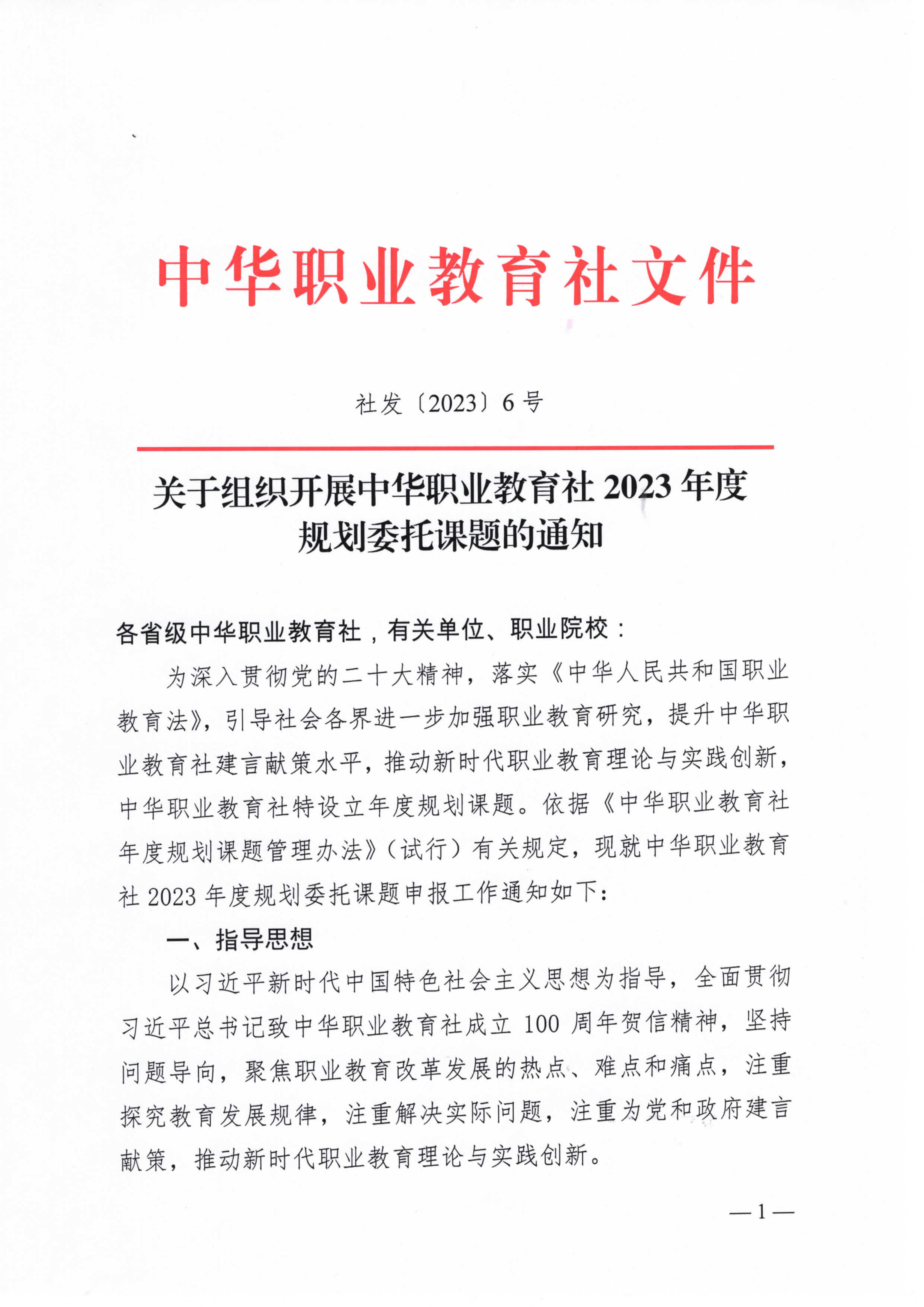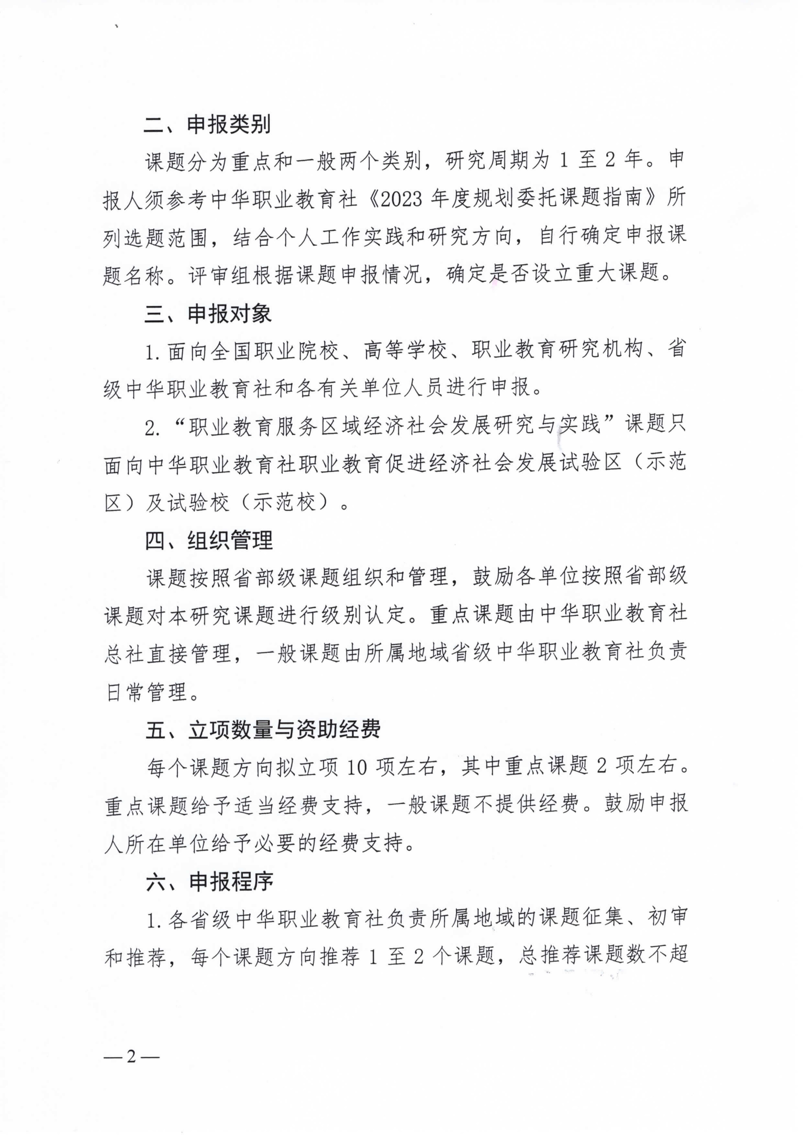 关于组织上报中华职业教育社2023年度规划委托课题的通知