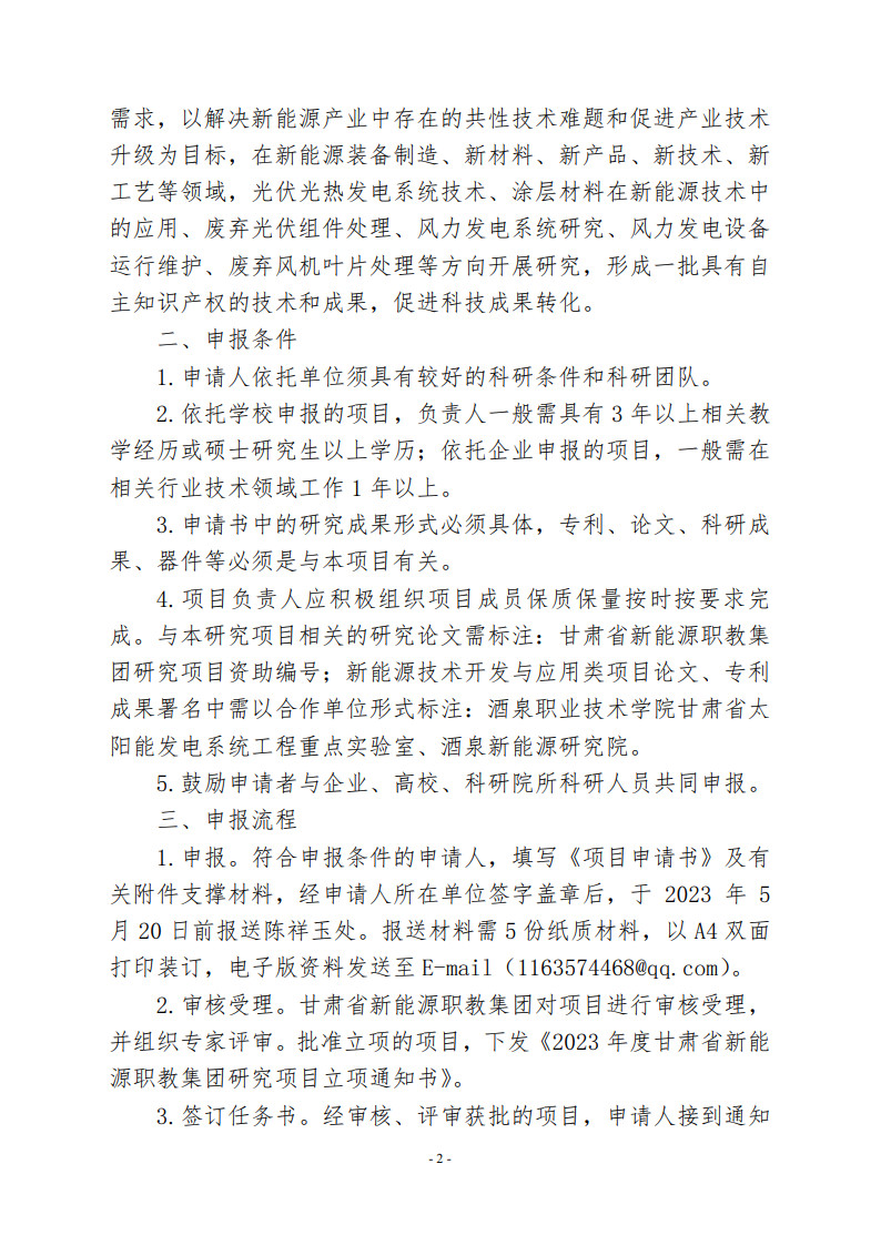 关于组织申报2023年度甘肃省新能源职教集团研究项目的通知