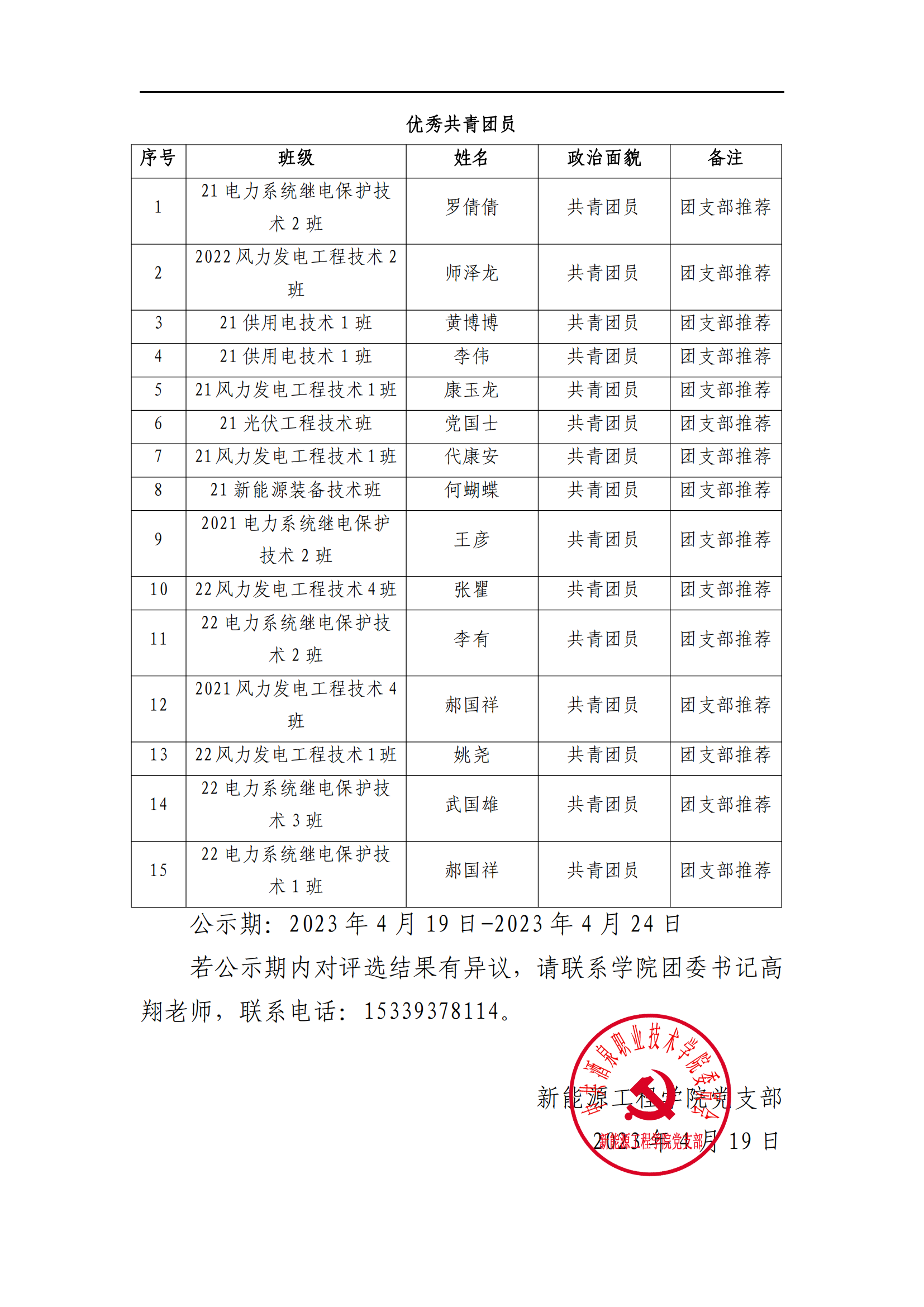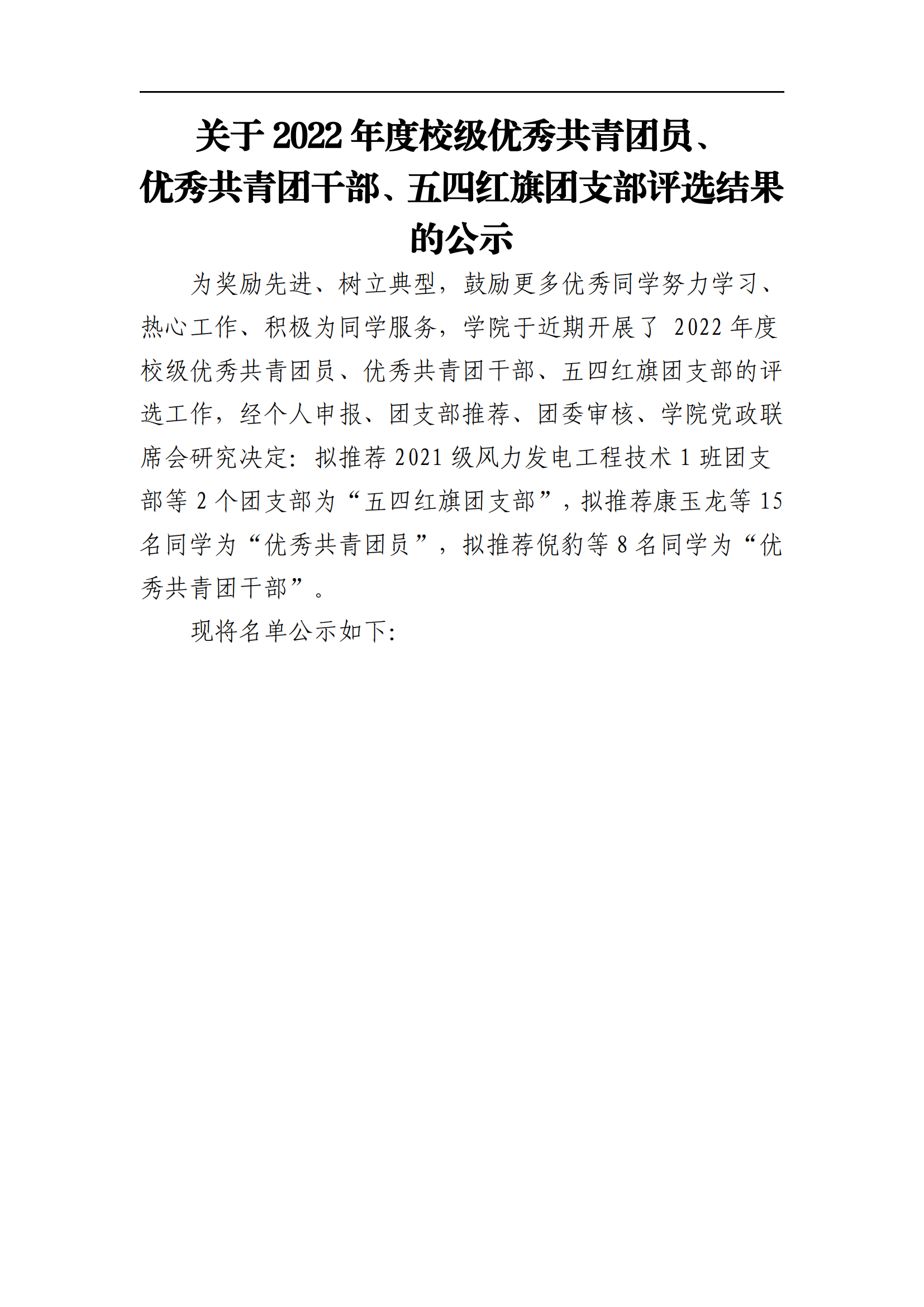 关于2023年度校级优秀共青团员、 优秀共青团干部、五四红旗团支部评选结果的公示