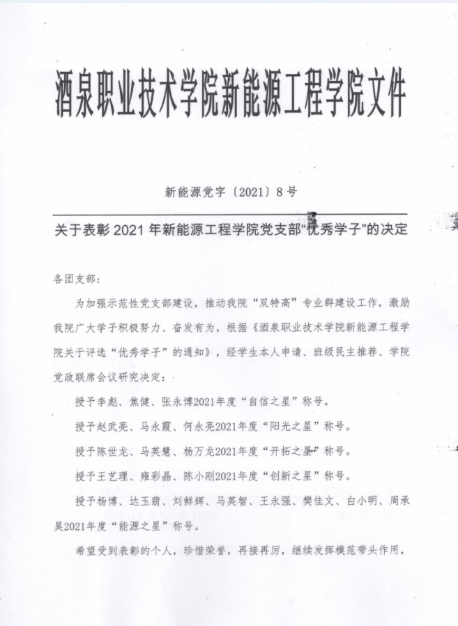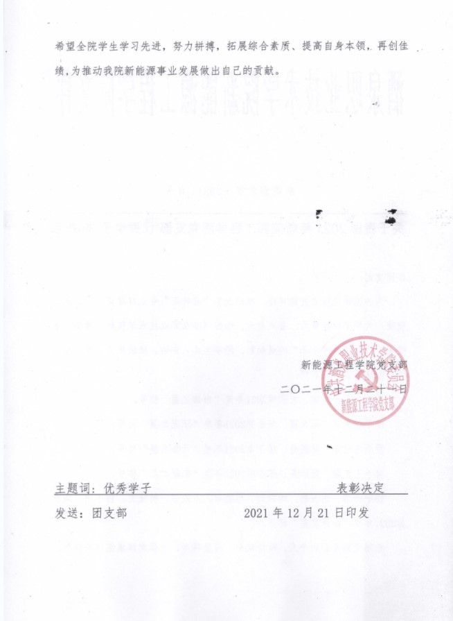 关于表彰2021年度公司党支部“优秀学子”的决定