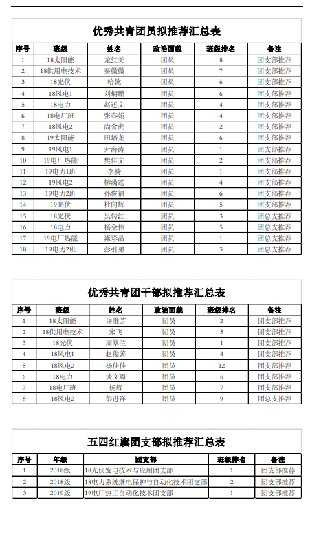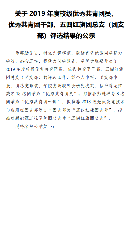 2026世界杯官网2019年度优秀团干、优秀团员、五四红旗团支部公示
