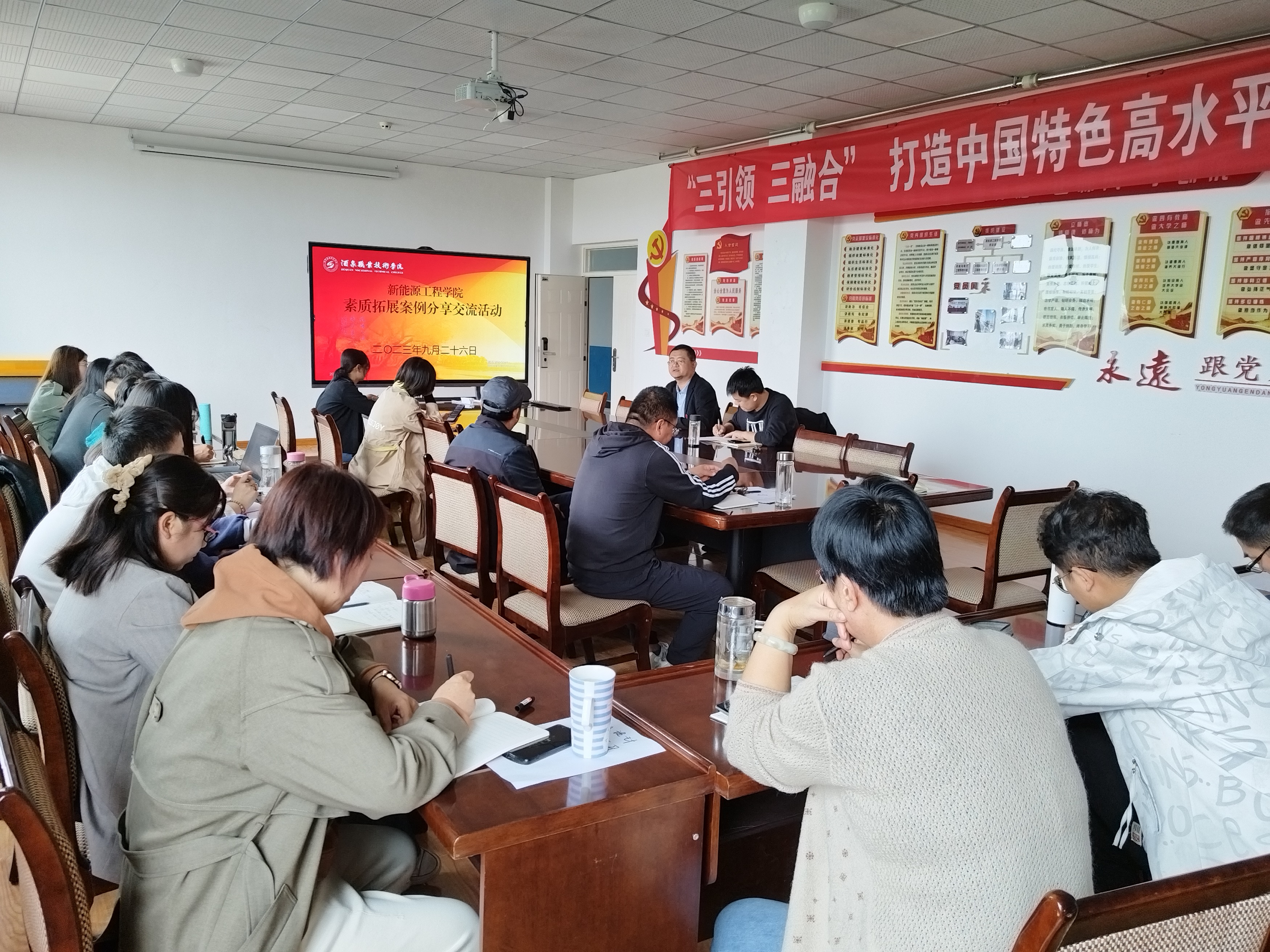 2023年9月26日下午,2026世界杯官网组织全体教职工开展了素质拓展案例交流分享活动。各参会老师根据自己的教学实际和任课情况,分别对素质拓展案例进行了分享,并且在分享过程中结合自己的教学经历和教学心得,对以后素质拓展教育的发展方向进行了交流,之后相互进行了评价。