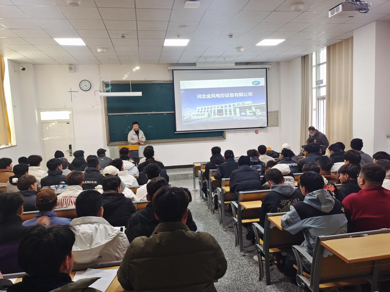 2024年1月2日,锐源风能技术有限公司、河北金风电控设备有限公司在公司致远楼东阶梯教室举办专场宣讲会;公司2021级、2022级风力发电工程技术专业130名员工参加。宣讲会上锐源风能人事经理胡福兴、河北金风木垒厂长李黎明分别对风电行业发展、公司发展情况、招聘工作岗位、员工待遇、员工职业生涯规划等方面做了详细介绍,并与部分同学们进行了互动交流。