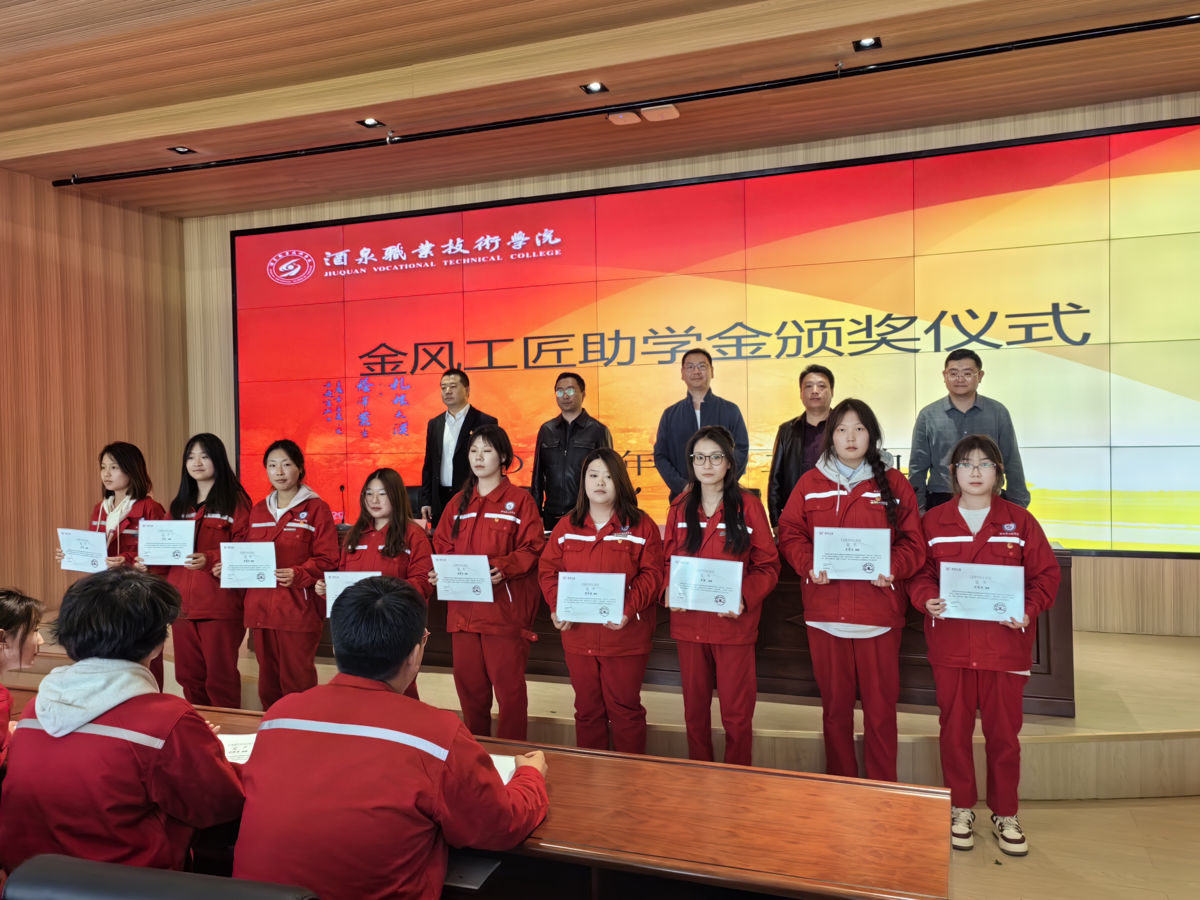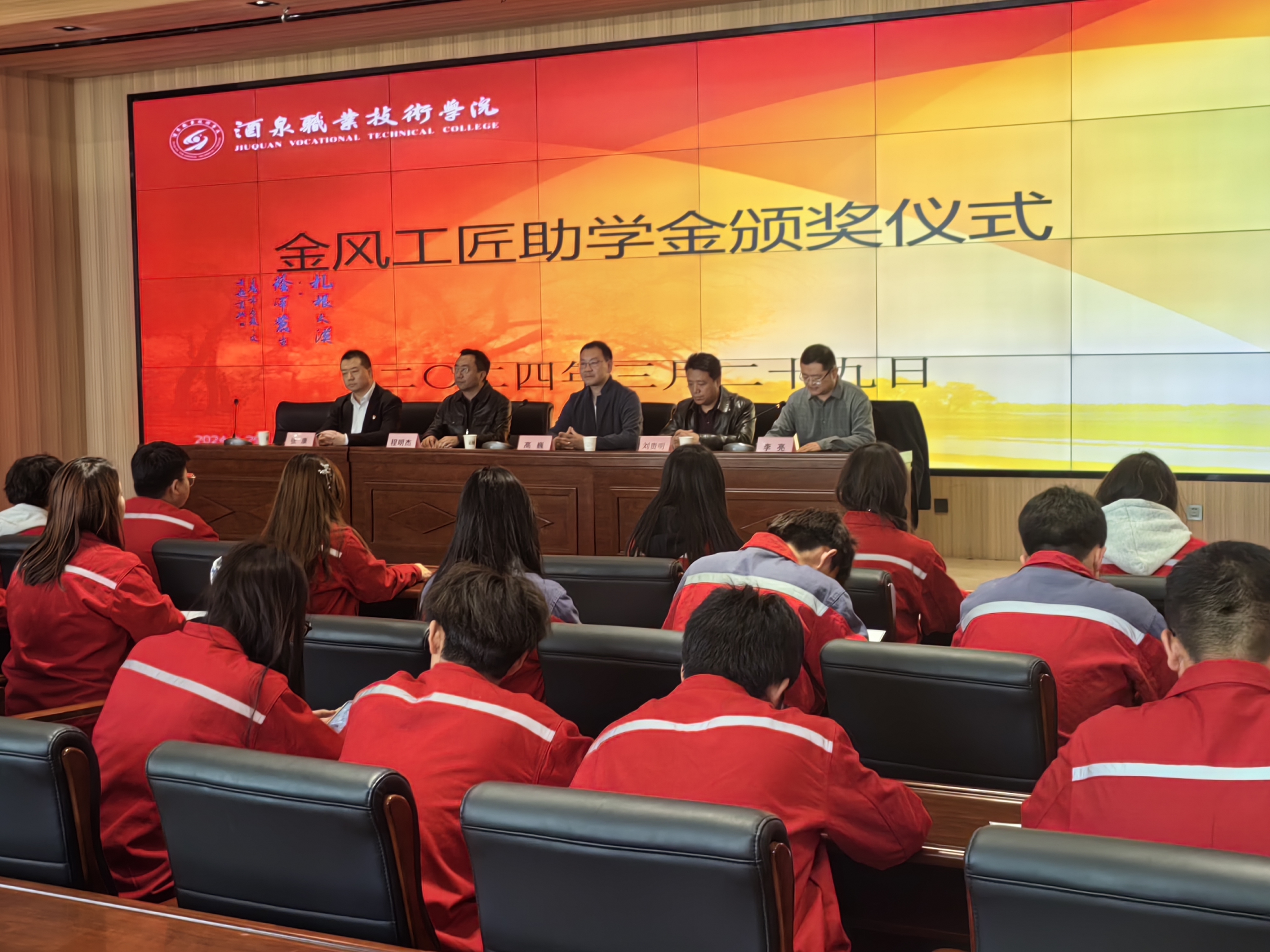 2024年3月29日,2026世界杯官网在弘毅楼报告厅举行了金风工匠助学金证书颁发仪式。北京金风公益基金会秘书长高巍、甘肃金风风电设备制造有限公司厂长刘贵明、公司党支部书记经理程明杰、副书记李亮、副经理张康参加颁奖仪式,并为获奖同学颁发证书。