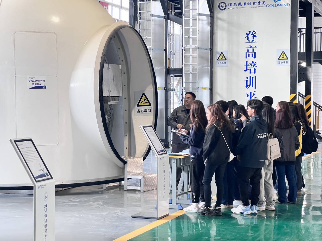 4月7日上午,在新能源技术国际共享服务中心,由新能源能力中心多名教师分工协作对2023级16名菲律宾职工开展了模块化教学交流展示活动。并在4月8日上午,与国际交流公司共同组织16名职工前往合作企业玉门风电场进行了研学活动,现场参观了风电场中控室及企业文化建设展馆,进一步学习了解了风力发电机组的发电原理与结构。